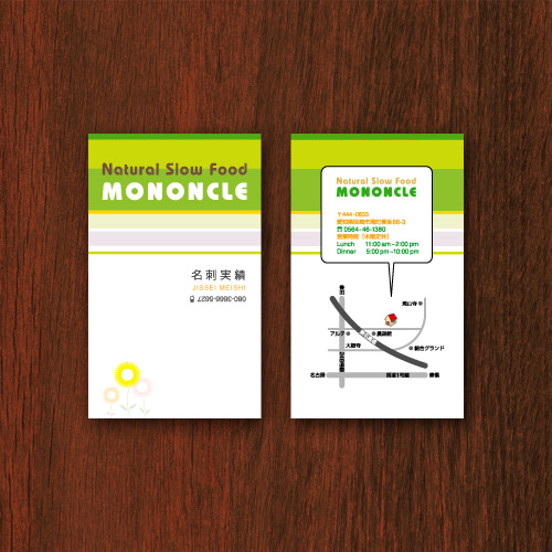 人の印象は最初の数秒で決まります。 その数秒間に渡す名刺のデザインもまた、あなたを印象付ける重要な要素となります。 誠実なイメージ、やさしいイメージ、かわいい、美味しそう、などなど、 名前や仕事内容はもちろんのこと、会社やお店の雰囲気、価値観、そしてあなたの人柄も。 それらを正しく、そして強く相手に印象付けるデザイナーズ名刺は、 あなたのビジネスを円滑に、そして力強くサポートします。